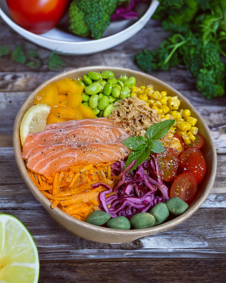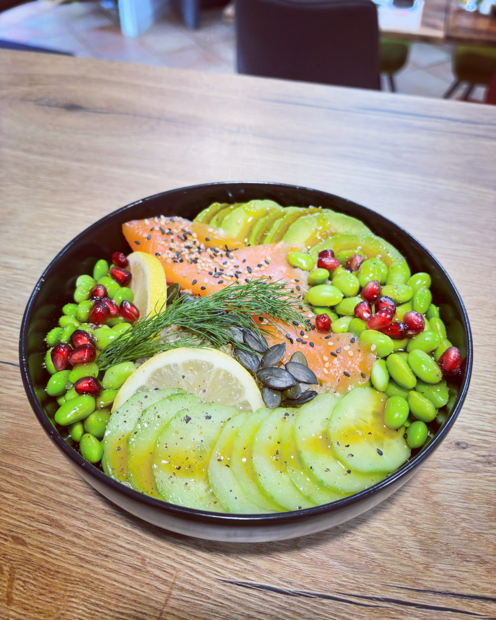 Choisir une option Avocat Carottes Râpées Chou Rouge Mariné Betterave Edamames Concombre Tomates Cerises Maïs Olives Oignons Rouges Graines Germées Châtaignes Locales